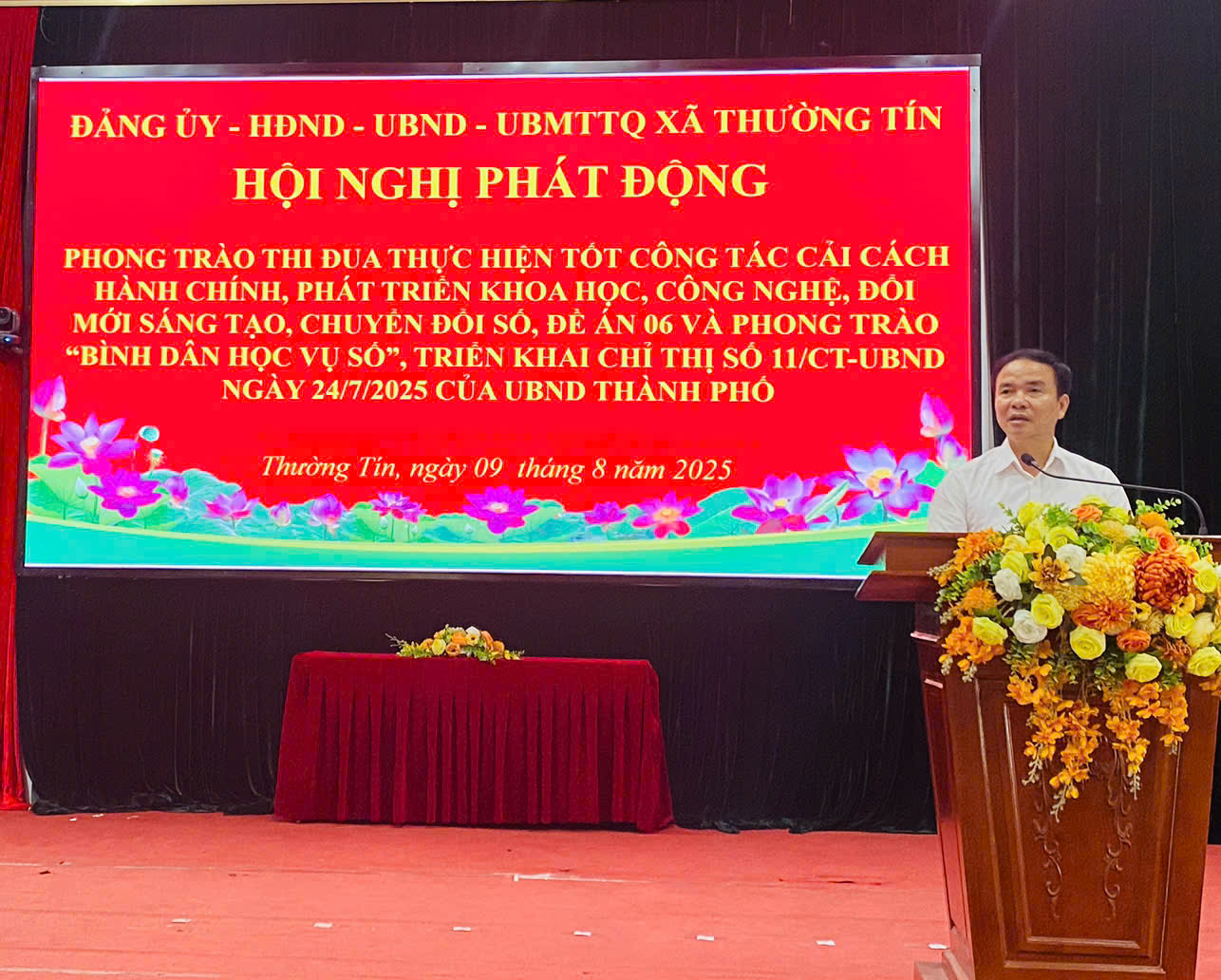 Tại hội nghị, đồng chí Nguyễn Văn Tản - UVBTV, Phó Chủ tịch UBND xã đã phát động phong trào thi đua cải cách hành chính, phát triển khoa học - công nghệ, đổi mới sáng tạo, thực hiện Đề án 06 và đặc biệt là phong trào "Bình dân học vụ số" – mô hình phổ cập kiến thức số cho toàn dân. Phong trào được triển khai cùng với chiến dịch 45 ngày đêm hỗ trợ hoạt động chuyển đổi số, huy động sự tham gia của các tổ công nghệ số cộng đồng và người dân tại các thôn, cụm dân cư nhằm phổ cập kiến thức và kỹ năng số cơ bản cho người dân, giúp người dân tiếp cận, sử dụng hiệu quả các dịch vụ công và nền tảng số.