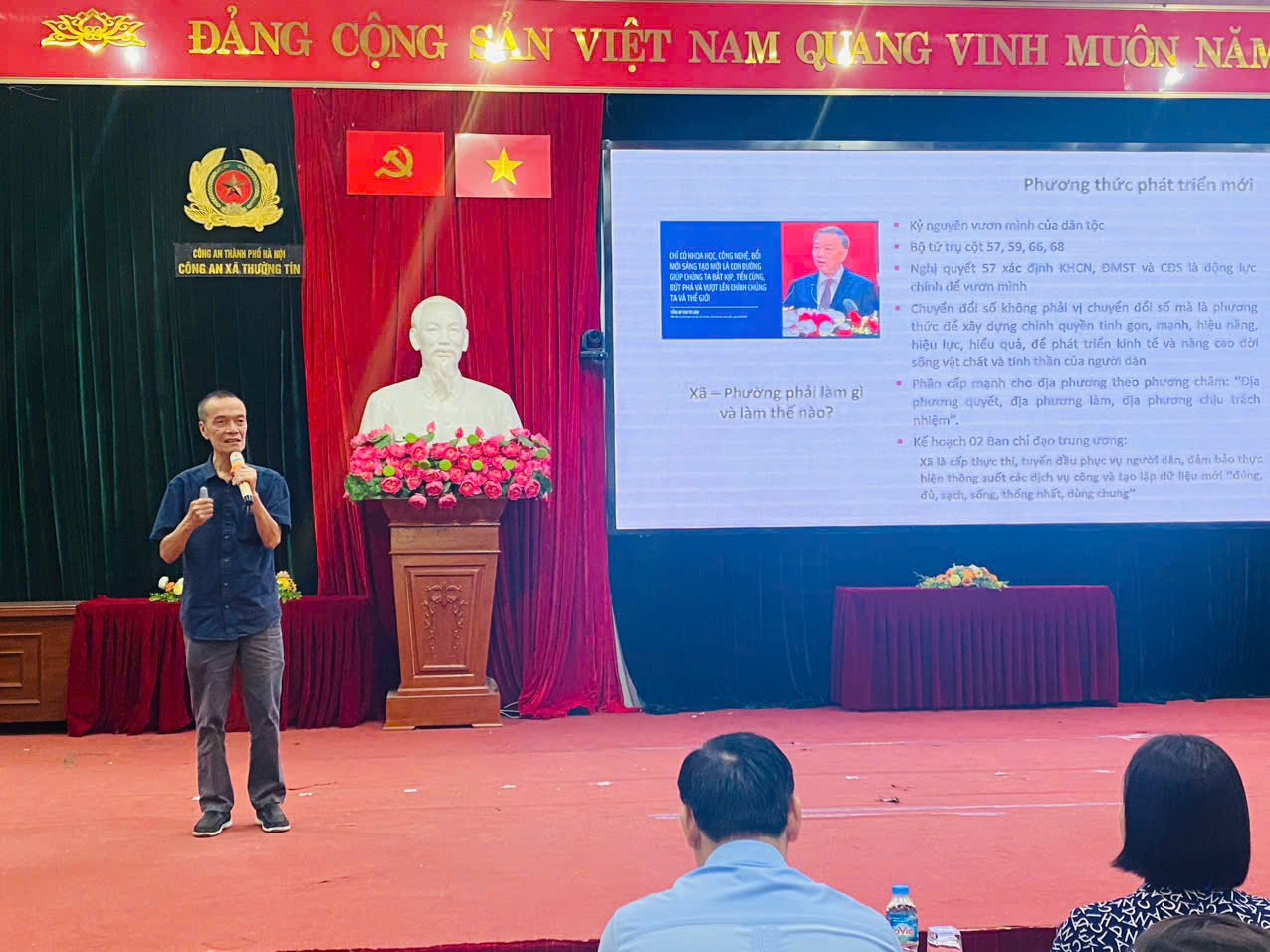Sau chương trình phát động, hội nghị được nghe Tiến sĩ Nguyễn Nhật Quang - Viện trưởng Viện Khoa học - Công nghệ VINASA, thành viên Hội đồng Tư vấn Quốc gia, Hội đồng Tư vấn Thành ủy và Ban chỉ đạo Chuyển đổi số Thành phố triển khai tập huấn, phổ biến kiến thức về chuyển đổi số. Tiến sĩ Quang đã phân tích sâu về vai trò của chuyển đổi số trong cải cách hành chính, đề xuất giải pháp thúc đẩy ứng dụng công nghệ thông tin trong quản lý công và dịch vụ công trực tuyến, đồng thời hướng dẫn cách tiếp cận hiệu quả mô hình chính quyền số và công dân số tại cơ sở.