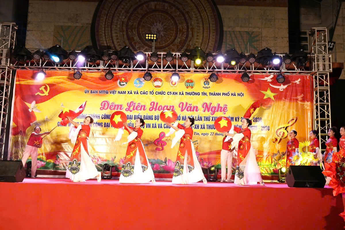 Đêm liên hoan văn nghệ diễn ra với những tiết mục nghệ thuật đặc sắc, ca ngợi Đảng quang vinh, Bác Hồ kính yêu, Mặt trận Tổ quốc trung tâm khối Đại đoàn kết dân tộc, ca ngợi sự đổi thay của đất nước, Thủ đô văn hiến, quê hương Thường Tín anh hùng, sự phát triển đổi thay từng ngày sau khi sắp xếp lại Giang sơn, Chính quyền địa phương 2 cấp đi vào hoạt động, đất nước bước vào kỷ nguyên vươn mình, giàu mạnh.