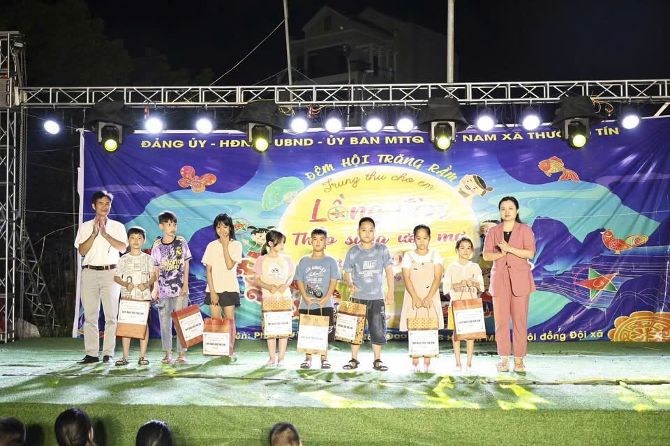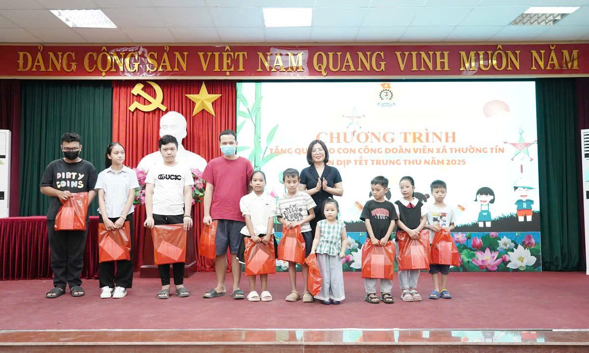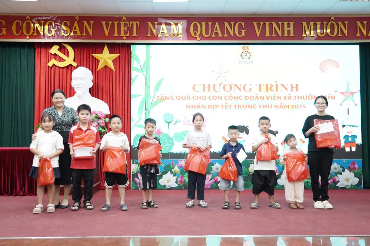 Tại chương trình, Công đoàn xã Thường Tín đã trao tặng quà cho 50 con em Công đoàn viên, mỗi suất quà giá trị 400.000 đồng, tổng kinh phí 20 triệu đồng. Chương trình trao tặng quà cho con Công đoàn viên xã Thường Tín, với mong muốn mang đến cho các em một mùa Trung thu ấm áp, trọn vẹn niềm vui. Đây là hoạt động ý nghĩa, thể hiện sự quan tâm, chăm lo đời sống vật chất và tinh thần của tổ chức Công đoàn đối với con công đoàn viên, khích lệ các cháu thi đua học tập, rèn luyện tốt, trở thành con ngoan trò giỏi cháu ngoan Bác Hồ. * Ngày 05/10/2025, tại thôn Bình Vọng, Đoàn TNCS Hồ Chí Minh xã Thường Tín đã phối hợp với Đoàn TNCS Hồ Chí Minh Bộ Nông nghiệp và Môi trường, cùng đơn vị nhà tài trợ, tổ chức chuỗi hoạt động Trung Thu chào mừng thành công Đại hội Đoàn các cấp, nhiệm kỳ 2025 - 2030 với đông đảo thanh thiếu niên nhi đồng và nhân dân tham dự.